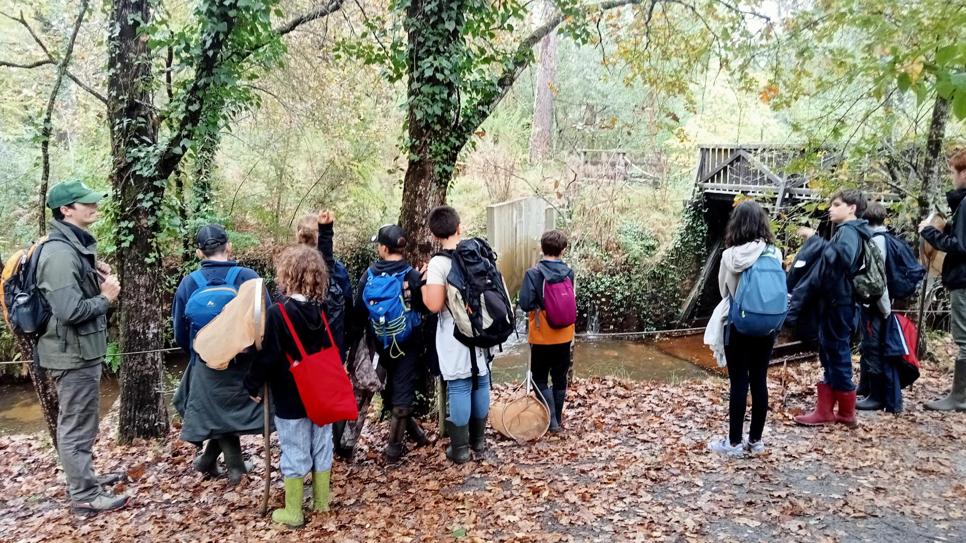 L'écomusée de Marquèze, équipement du Parc situé à Sabres, pour remonter le temps et découvrir la vie d’autrefois dans les Landes de Gascogne. Les jeunes ont exploré le rôle de l’eau dans le quotidien des habitants d’autrefois et observé deux infrastructures liées : un ancien moulin et une passe à poissons, élément clé pour assurer la continuité écologique des cours d’eau.