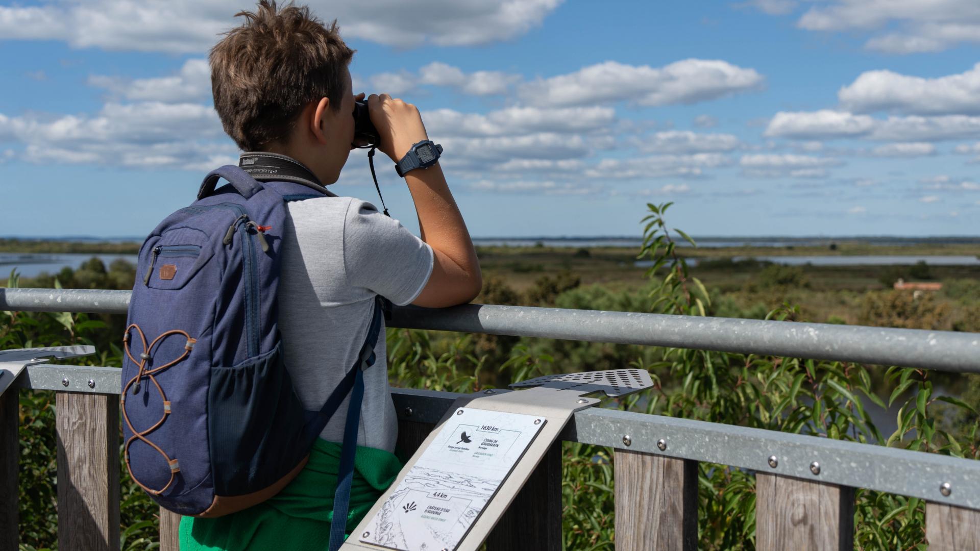 Un animateur naturaliste équipera les enfants de jumelles pour guider leur regard vers de nombreuses espèces.