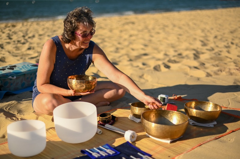 Offrez vous une parenthèse enchantée avec Bénédicte au port du Teich, où le doux son des bols tibétains vou...