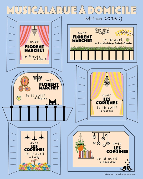 Dénuées de superflu, les voix a cappella des Cop(i)nes révèlent la richesse des mélodies, des rimes et allitérations des chansons « craditionnelles » qui font leur répertoire. Saugrenues, drôles voire outrancières, ces chansons sont sublimées par des harmonies et envolées mélodiques prodigieuses. Les Cop(i)nes rivalisent d’inventivité et de talent pour donner à entendre des textes drolatiques ! Au même titre que les comptines pour enfants, les chansons grivoises traversent le temps et les âges et l’on ne peut s’empêcher de fredonner l’air et les paroles dès la fin du concert. Pour venir voir Les Copines à domicile (réservation obligatoire – par téléphone – auprès des hébergeants) : Jeudi 16 avril • 20h30 • GAREIN Chez Thierry VAASTE et Franck RIGONI au 1181 chemin du moulin vieux (accès par la route d’Ygos) 40420 GAREIN. Réservation au 06 10 46 07 45.